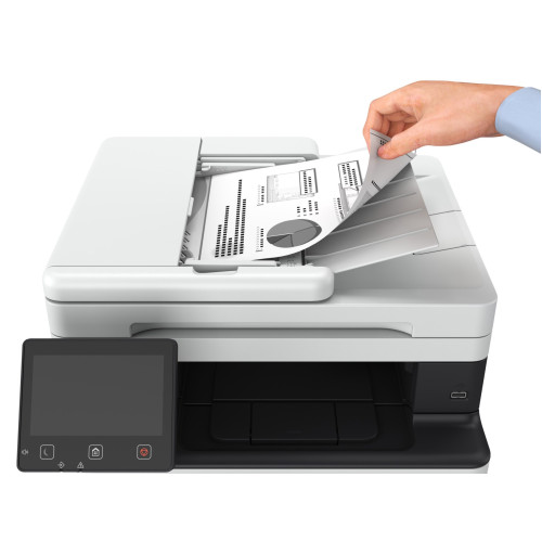 Standardní kapacitu tvoří zásobník na 250 listů, víceúčelová přihrádka na 100 listů a automatický podavač dokumentů (ADF) na 50 listů s jednoprůchodovým oboustranným skenováním. Volitelný zásobník AH1 na 550 listů umožňuje rozšířit kapacitu až na 900 listů. Podporovány jsou formáty od A6 po Legal a gramáže od 60 do 199 g/m².