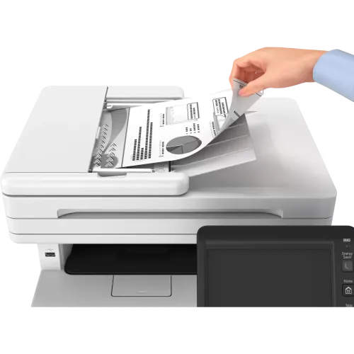 Tato černobílá kancelářská tiskárna je navržena pro firmy, které potřebují spolehlivý tisk dokumentů A4, rychlé kopírování a efektivní digitalizaci dokumentů.