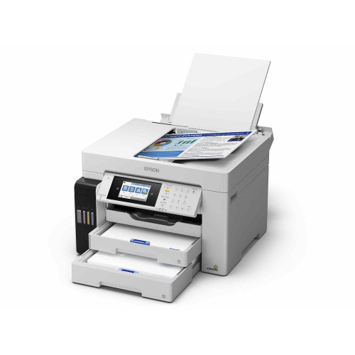 Epson EcoTank L15180 je rychlá firemní multifunkční tiskárna s podporou formátu A3+, která kombinuje tisk, skenování, kopírování a faxování. Díky doplnitelným inkoustovým nádržkám přináší mimořádně nízké náklady na tisk a technologie PrecisionCore Heat-Free zajišťuje nízkou spotřebu energie i vysokou spolehlivost. Barevný dotykový LCD displej s úhlopříčkou 10,9 cm usnadňuje ovládání.