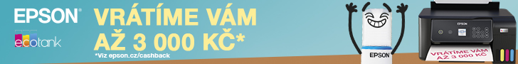 Kupte si vybranou tiskárnu Epson EcoTank v období od 1.9.2025 do 31.12.2025, zaregistrujte se do 30 dní od nákupu a získejte až 3 000 Kč zpět. Více informací a úplné znění podmínek naleznete na stránce epson.cz/cashback